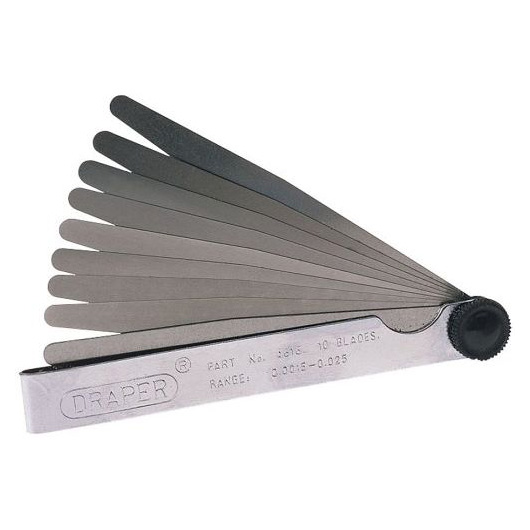 The Draper 73970 Imperial Feeler Gauge features 100mm long taper blades. Each blade is marked with its size and folds into a plated steel case with thumbscrew. 100mm long taper blades