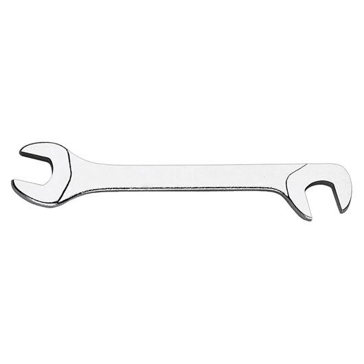 Metric 15° & 75° hinged miniature open end spanners. Specifications: • Size: 15mm • Length: 140mm • Weight: 70g. Features and Benefits: • Short shank and slim heads for manoeuvrability in confined spaces • Heads hinged at 15° and 75° for use on nuts inaccessible with a standard wrench • Satin chrome finish. Product may differ from image.